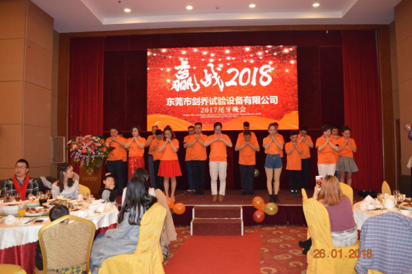 2018年元月26日,劍喬試驗(yàn)設(shè)備于塘廈匯華酒店成功舉辦了2017年尾牙晚會,會上高朋滿座,劍喬總經(jīng)理在會上發(fā)表致辭,表達(dá)了對各位合作伙伴一年以來大力支持的感謝,更是總結(jié)了2017年劍喬公司一年里的收獲及成長,并給優(yōu)秀員工及突出貢獻(xiàn)的人員給予表彰。再對劍喬2018年定下了發(fā)展目標(biāo)及期許,晚會在一片歡樂祥和中進(jìn)行。